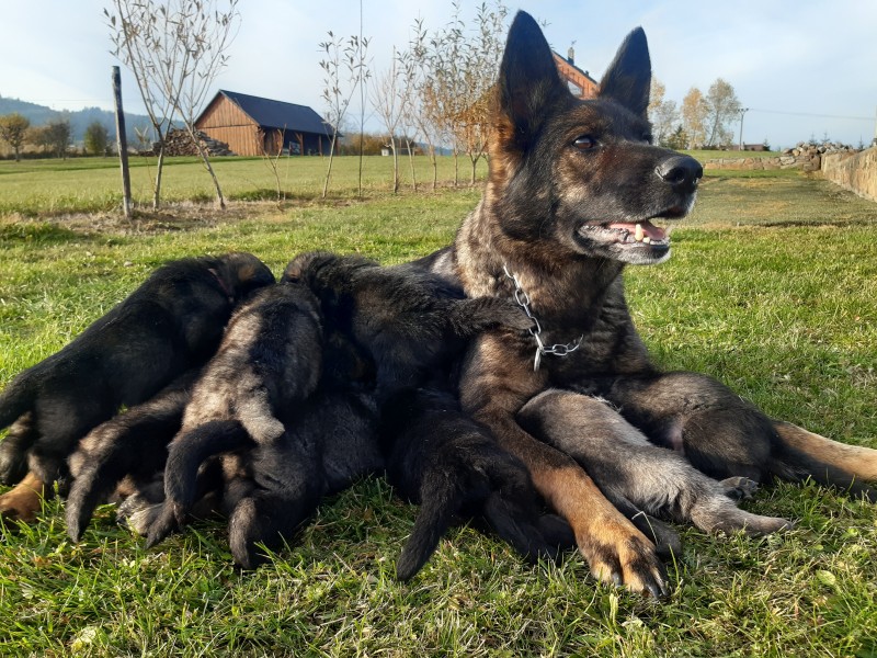 Dne 17.7. 2023 Ajmy porodila 7 psů a 1 fenu, otcem štěňat je vícemistr ČKNO pro letošní rok Chuck Felones
